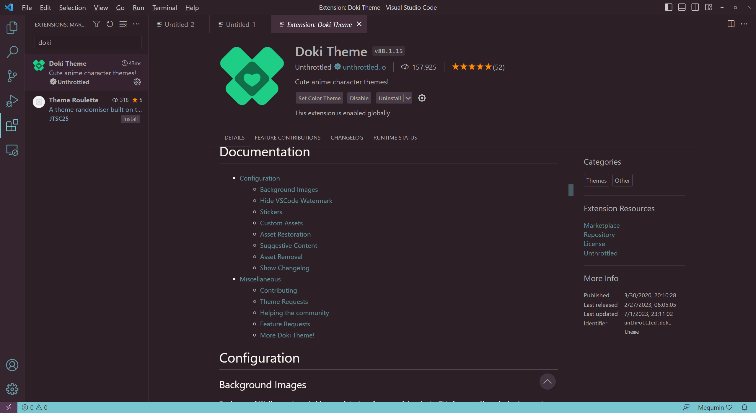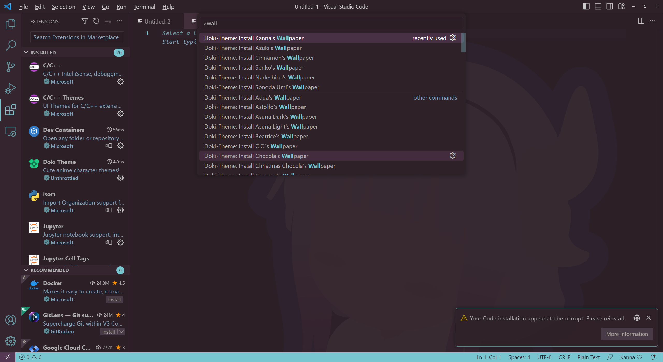 설치 후 ctrl +shift + p 로 검색해서 명령을 실행하면 배경도 바꿀 수 있다.