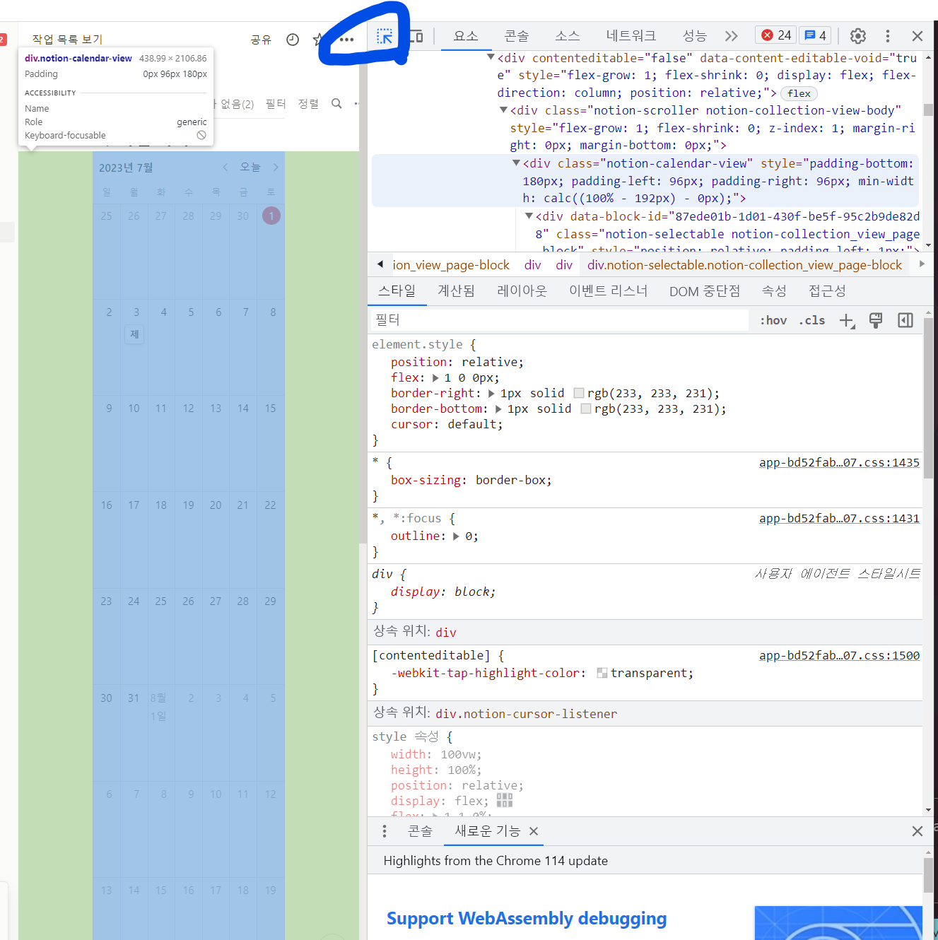 f12로 개발자모드 켜고 파란색 원 표시한 곳 누르고 요소를 클릭하면 이처럼 css코드도 엿볼 수 있으니까 다음에 참고하자.