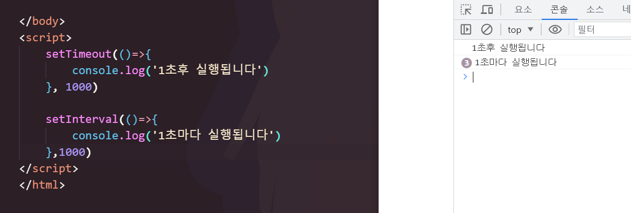 setTimeout은 페이지 로드한지 지정한 시간만큼 지나서 한번만