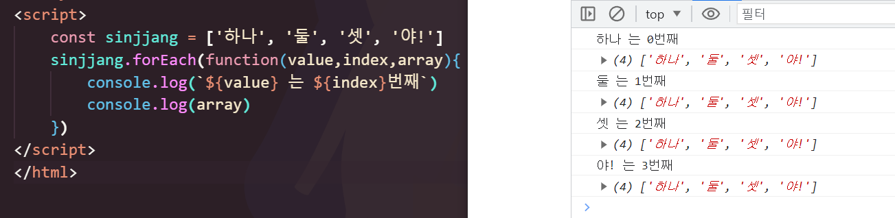 map 메서드도 forEach와 같이 value, index, arry를 매개변수로 받지만, forEach에서나 map 에서나 세개의 매개변수