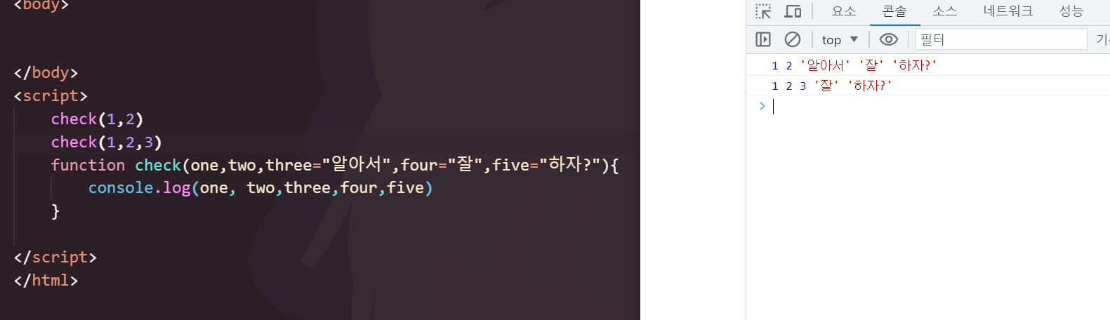 위 check 변수에서는 5개의 매개변수가 존재하는데, 세번째 매개변수부터 값이 초기화 되어있으므로