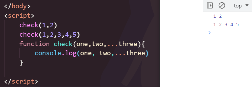 매개변수에 ...을 사용해 나머지 매개변수를 사용하면, 여러개의 값이 들어와도 배열 형태로 바꾸어 받을 수 있다.
