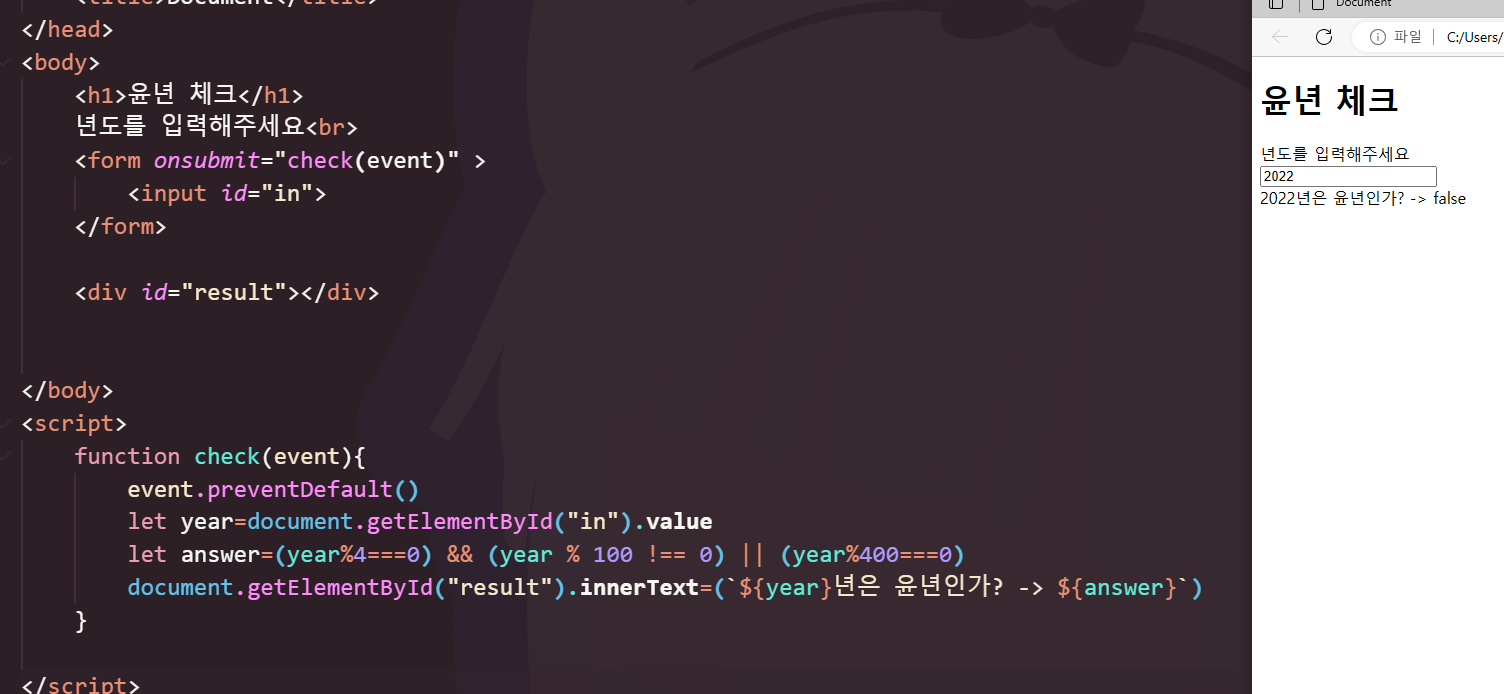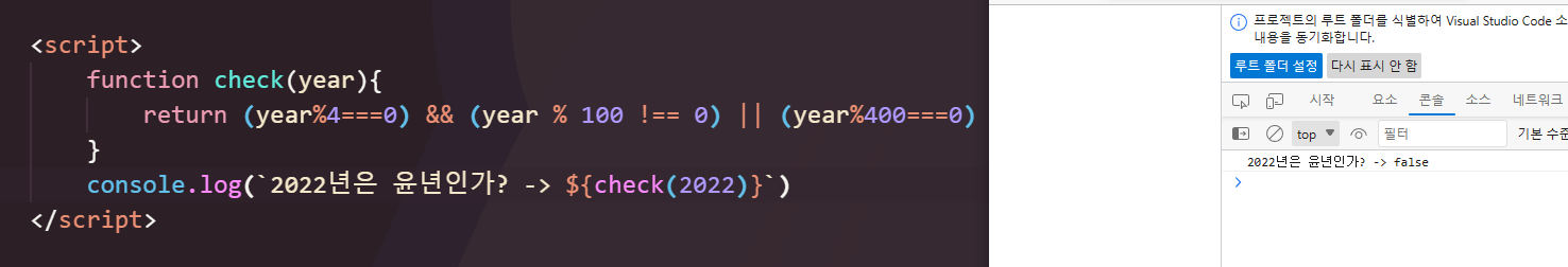함수를 사용해 매개변수로 년도를 받고 윤년인지 확인하는 문제