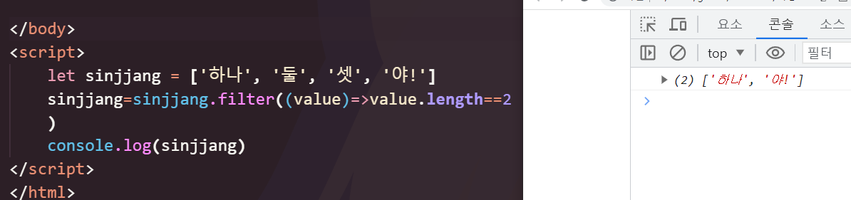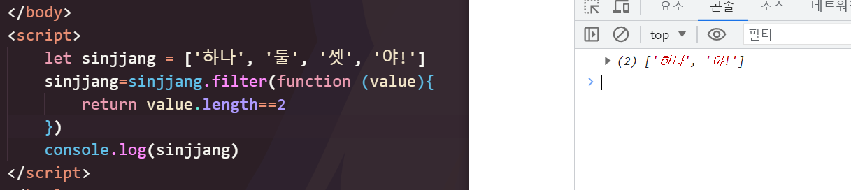 해당 조건에 맞는 항목만으로 새로운 numbers 배열이 만들어졌고 그를 출력했다.