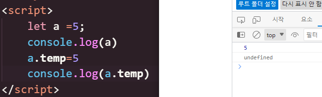 let a =5 같은 기본자료형의 경우에는 .연산자를 사용하더라도 속성을 추가할 수 없다.
