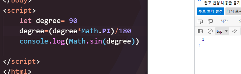 라디안 단위로 변환해준다고한다. 90도라는 각도를 라디안 형태로 바꿔주어야겠다.