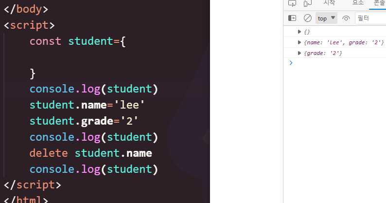 위와같이 없던 속성을 추가해주거나 속성을 삭제(delete 객체.속성) 할 수 있다.