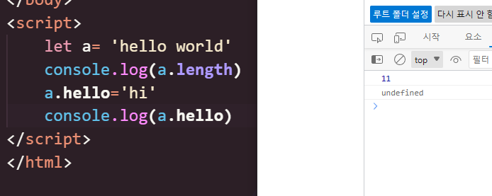 .length 를 사용하는 경우에는 기본 자료형을 객체처럼 사용하는 것 같아 잘못돼 보이지만.