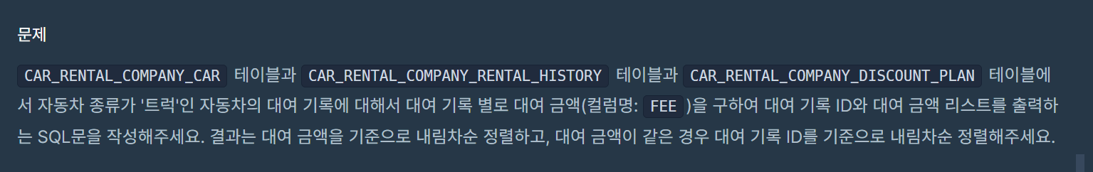 WITH AS 문으로 트럭인 자동차들만 추려 기간에 맞추어 DURATION_TYPE 형식으로 기간 COLUMN을 추가해둔다.