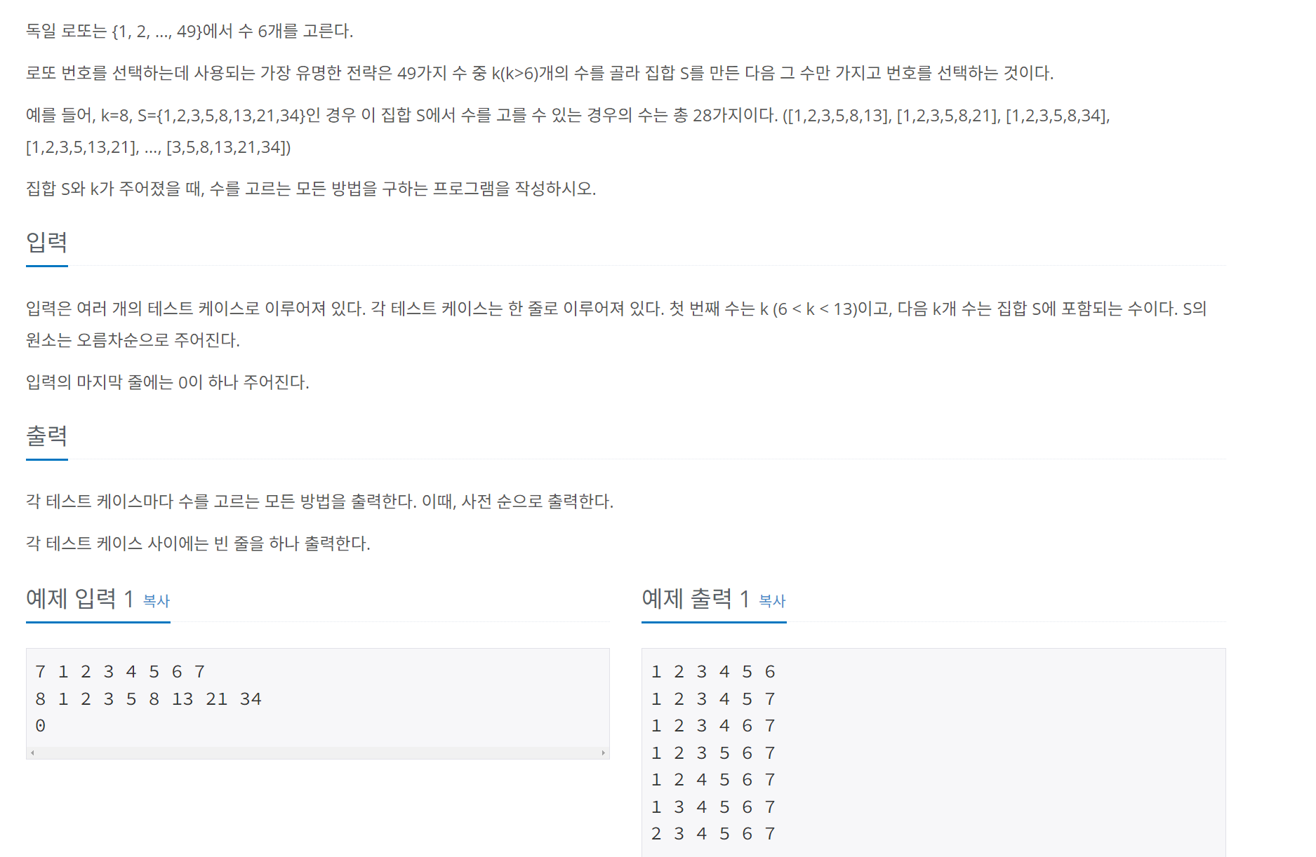 https://www.acmicpc.net/problem/6603