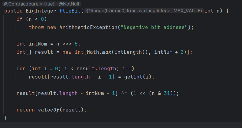 BigInteger의 flipBit 메서드를 보면 비트 하나를 토글하는 연산일 뿐인데 정적 팩터리 메서드 valueOf를 사용해